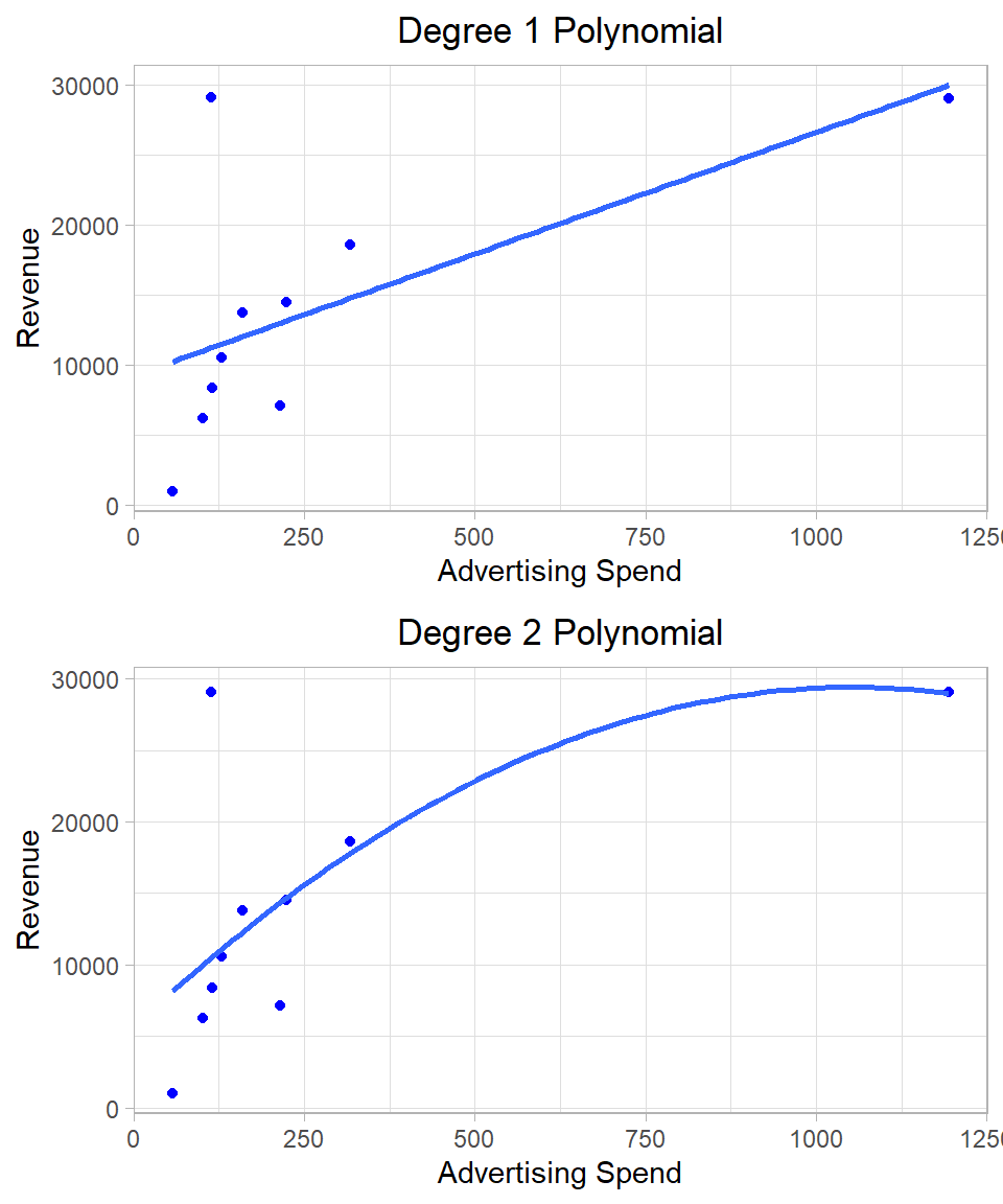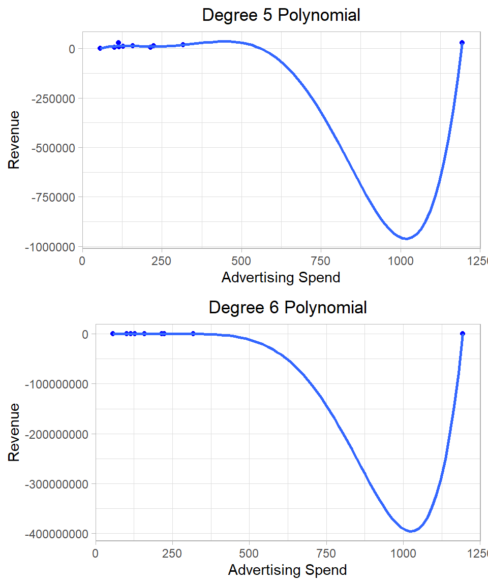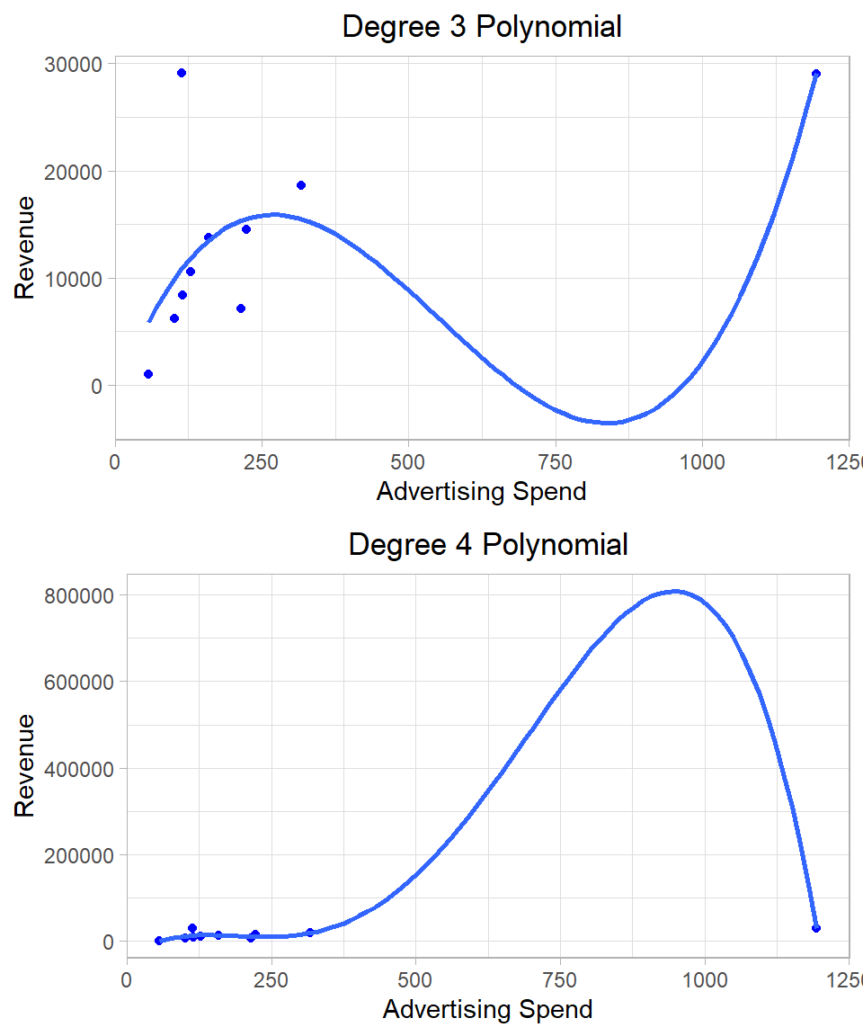 It is rare in practice to use such complicated interaction effects, especially if the goal is interpretation. As models become more complex, the coefficients become harder to explain, and the risk of misinterpreting the relationships increases. In applied work—particularly in business, economics, and the social sciences—models are often judged not only by their predictive accuracy but also by how clearly they communicate insights. Adding multiple or nonlinear interaction terms may obscure rather than clarify the story the data is telling.