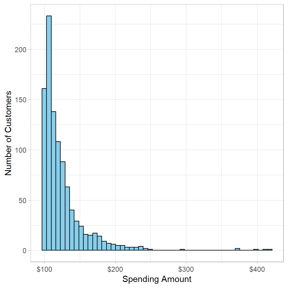 Imagine we run an online store and have data on how much each customer has spent over the past year. We can visualize this spending data as follows: