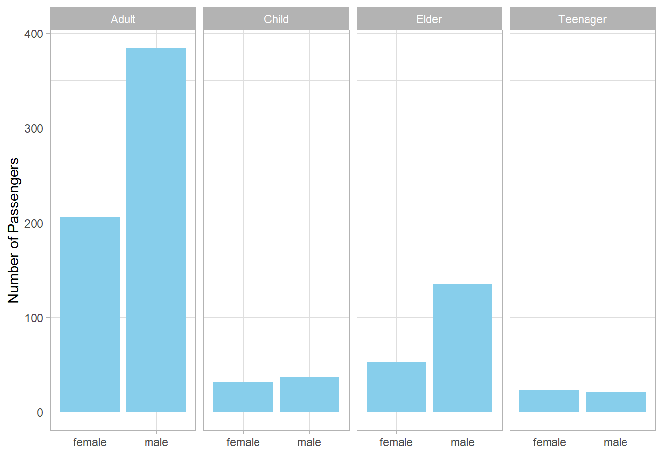 In all categories, at least 20 passengers are represented.