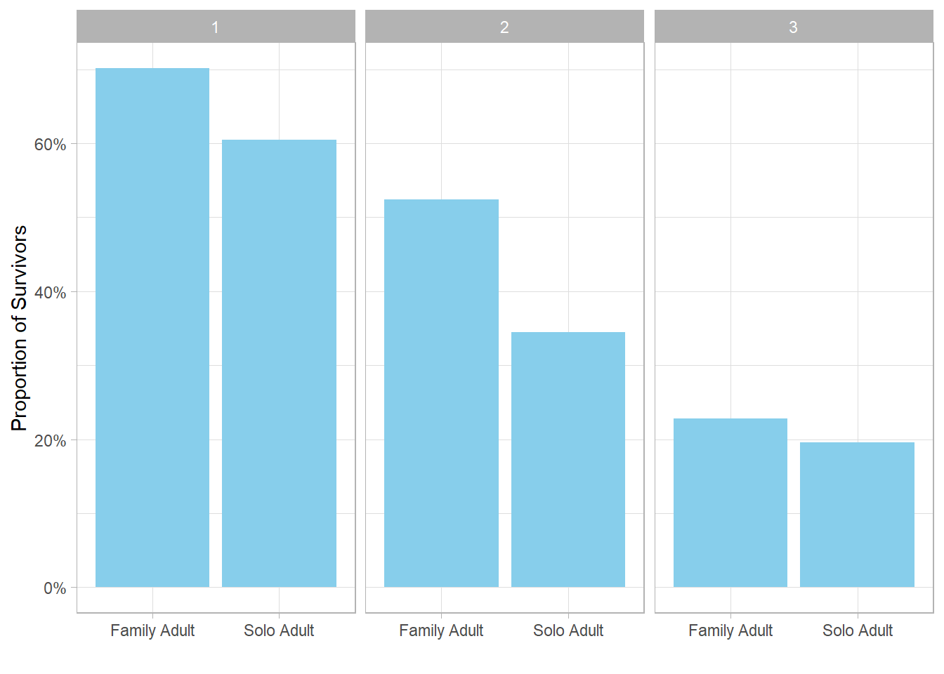 This raises an additional question: could proportions of survivors also be influenced by whether adults were traveling solo or with family?