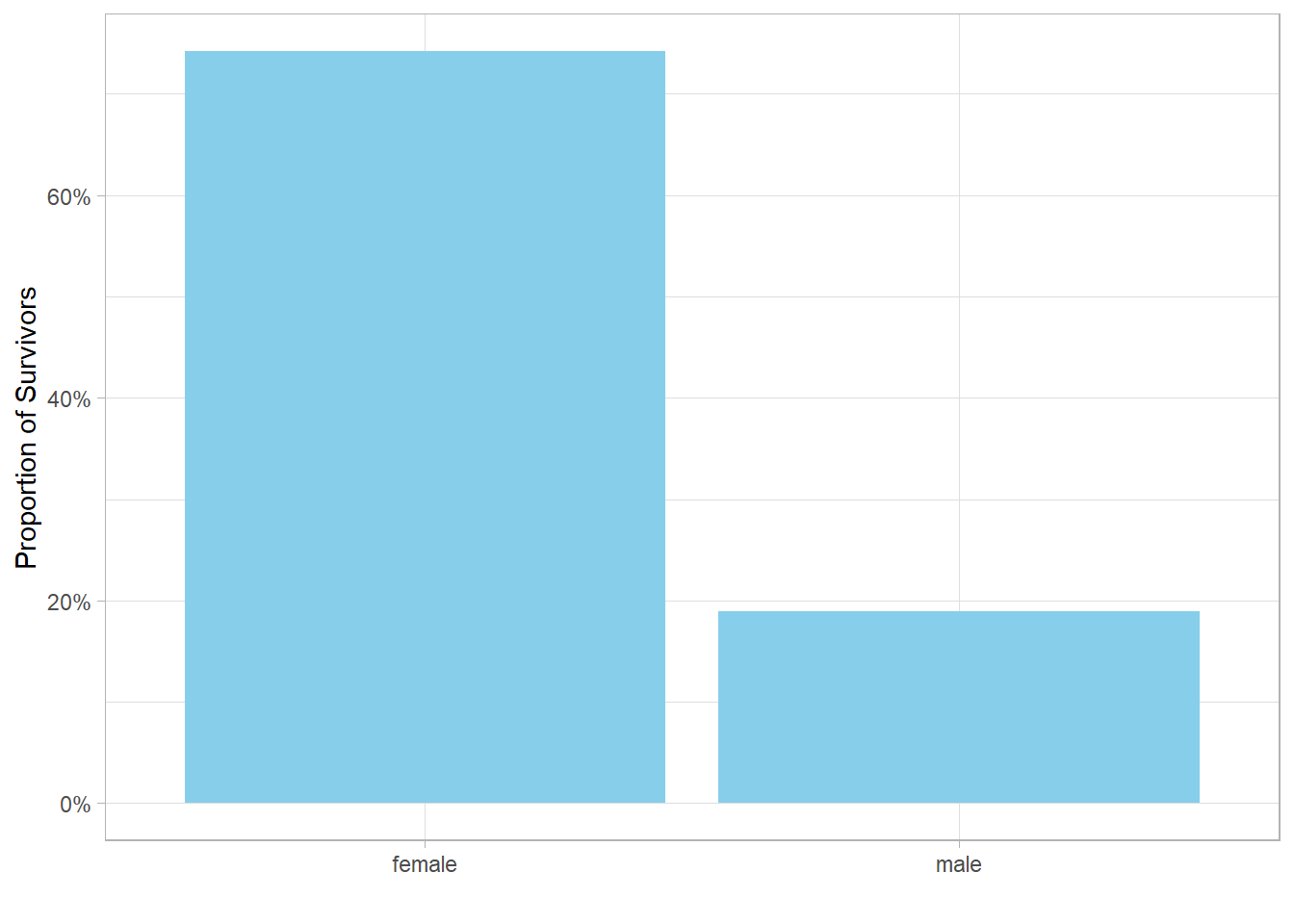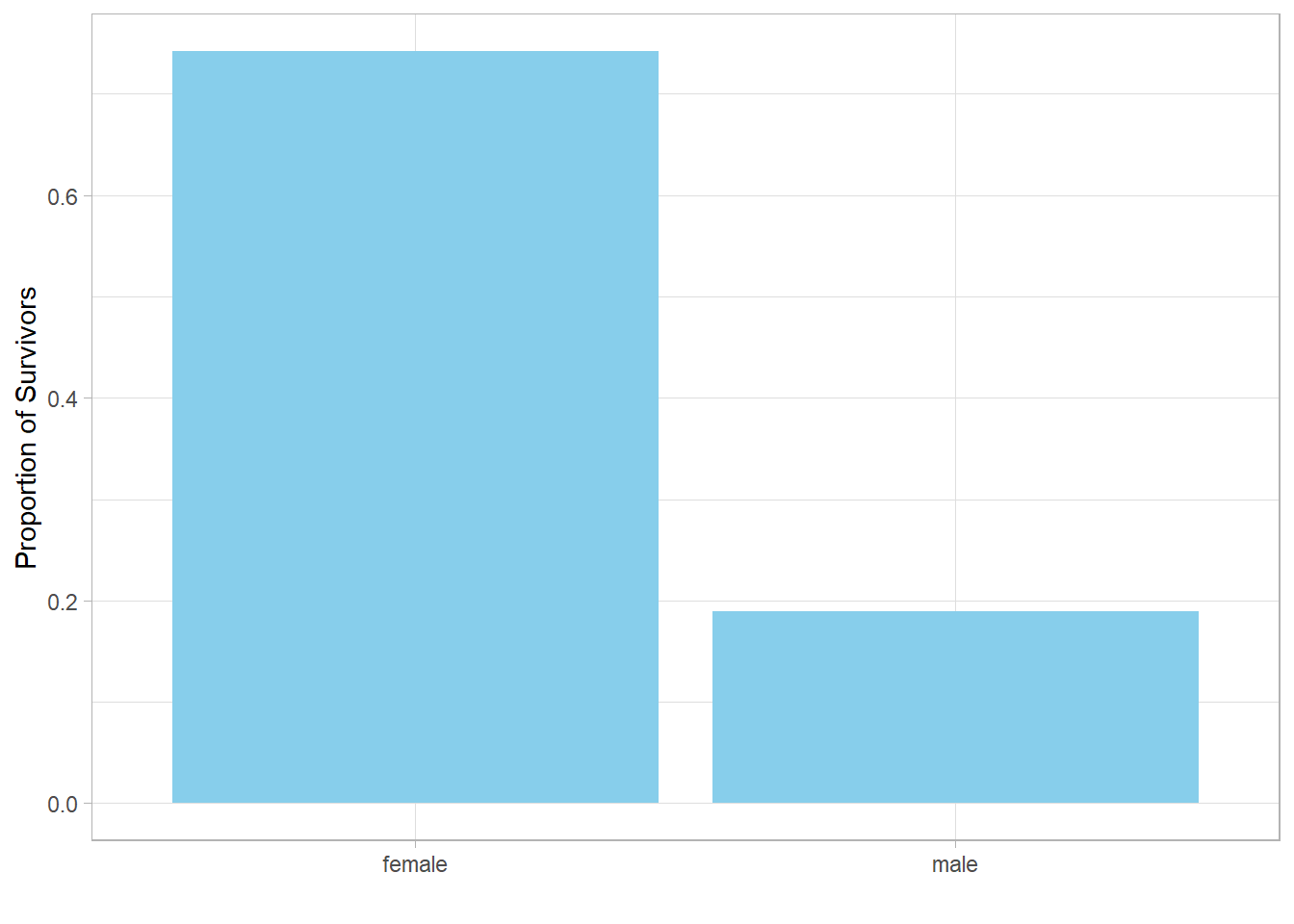 Next, we ask: How do proportions of survivors differ by gender?